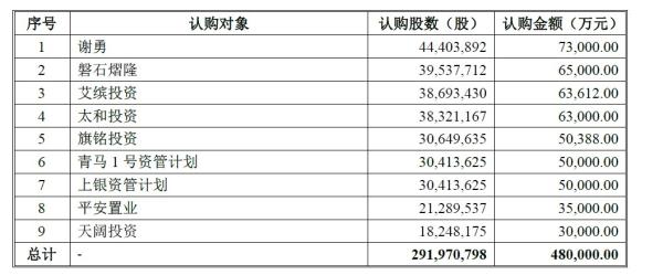 謝勇為上市公司昆百大A(000560)董事長(zhǎng),太和投資也是謝勇控制的企業(yè),謝勇認(rèn)購(gòu)金額合計(jì)為13.6億元。