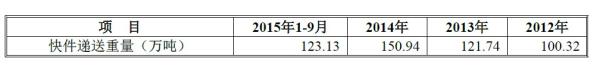 報(bào)告期內(nèi),申通快遞快件遞送重量如下: