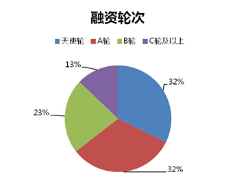 在融資輪次上,由于以交易為主打的B2B2.0電商發(fā)展日期較短,絕大部分企業(yè)還處于發(fā)展的早期階段(A輪與天使輪企業(yè)占比64%),而獲得C輪及以上融資的企業(yè)僅占13%。